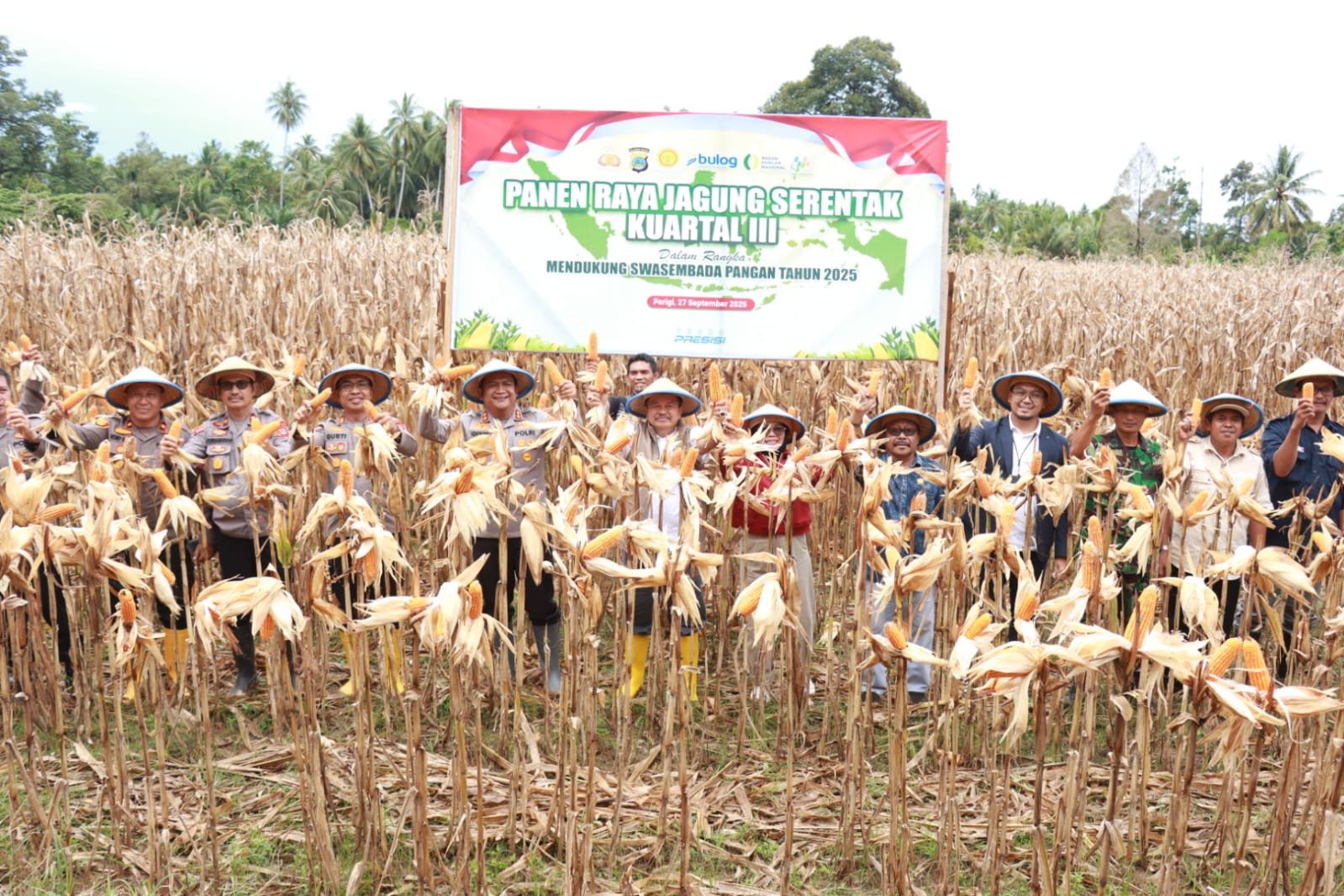 Polres Parigi Moutong (Parimo) bersama para petani menggelar panen raya jagung serentak kuartal III di Desa Lobu Mandiri, Kecamatan Parigi Barat, Sabtu 27 Septembar 2025. Sumber foto: IST